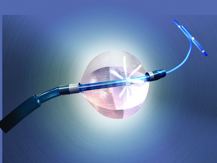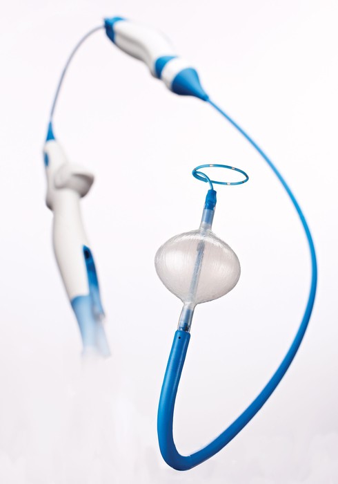 - Cryo balón responsable de aplicar la Cryo energía en el tejido. Existen dos generaciones de Cryo balones: -Primera generación: (con 4 eyectores de gas lo que genera un área de utilidad en la zona del ecuador del balón). -Segunda Generación: (con 8 eyectores que producen el enfriamiento del balón de manera tal que permite realizar su efecto terapéutico con toda la semiesfera distal). (Figura 2)