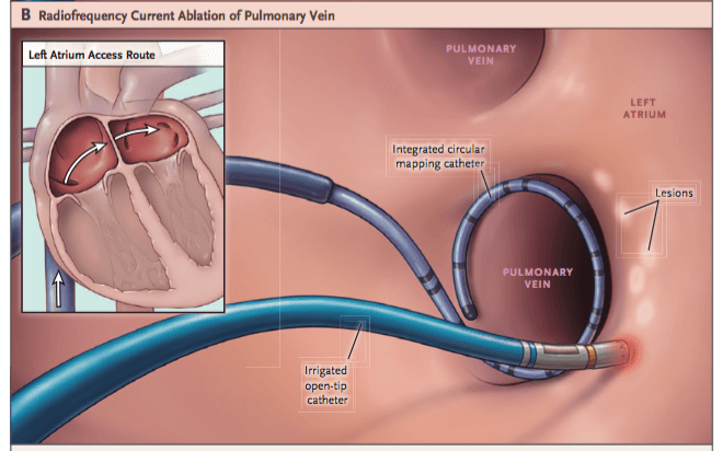 La ablación de venas pulmonares constituye la piedra angular en el tratamiento invasivo de la FA. Sabiendo que el 90% de los focos ectópicos que producen la FA se encuentra en el interior de las venas pulmonares, el desarrollar lesiones de manera circunferencial alrededor de las mismas (con la posterior evolución de estas lesiones a cicatrices), permiten conseguir el aislamiento eléctrico de estas estructuras y de esta manera el control del ritmo cardíaco.